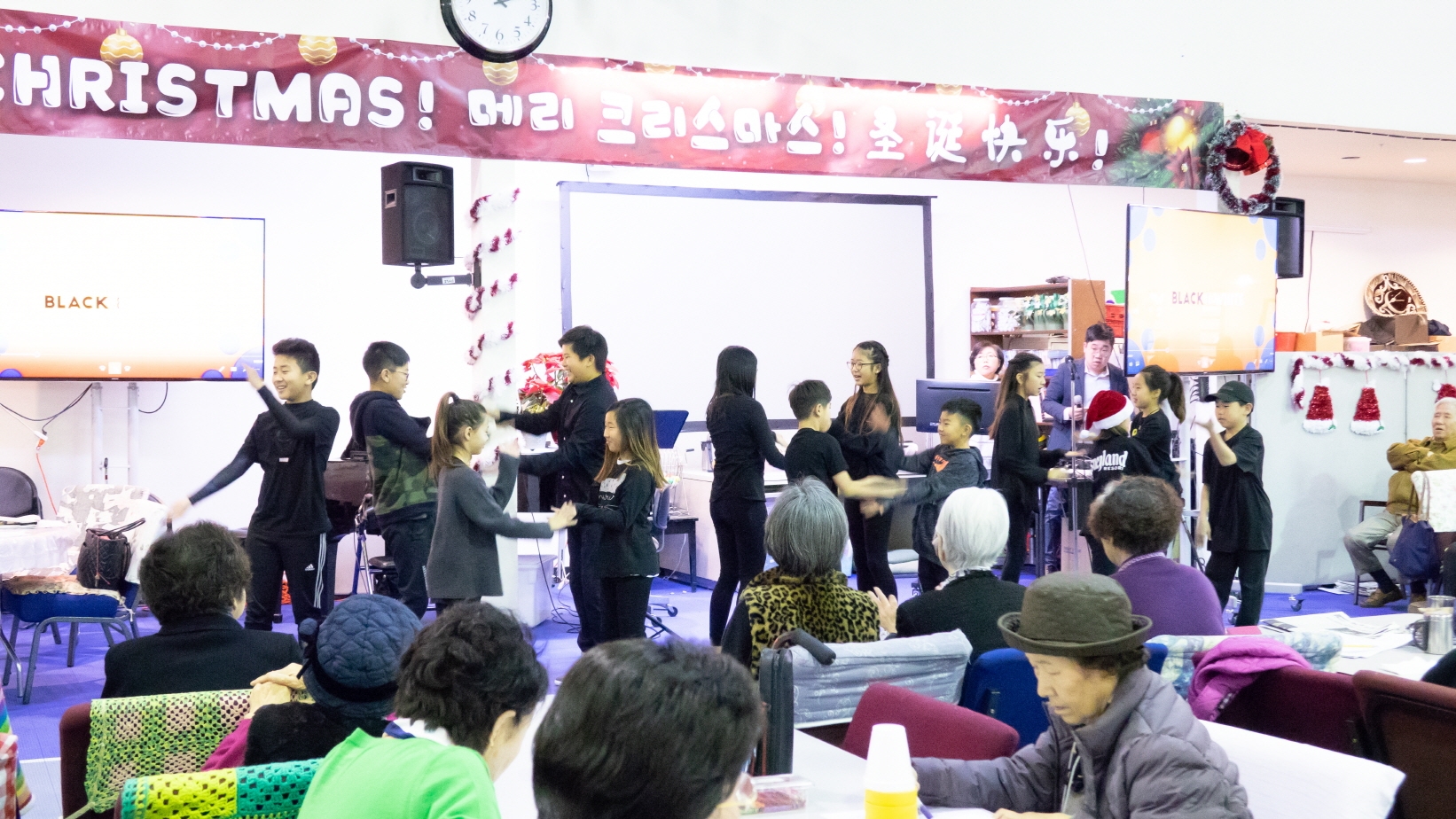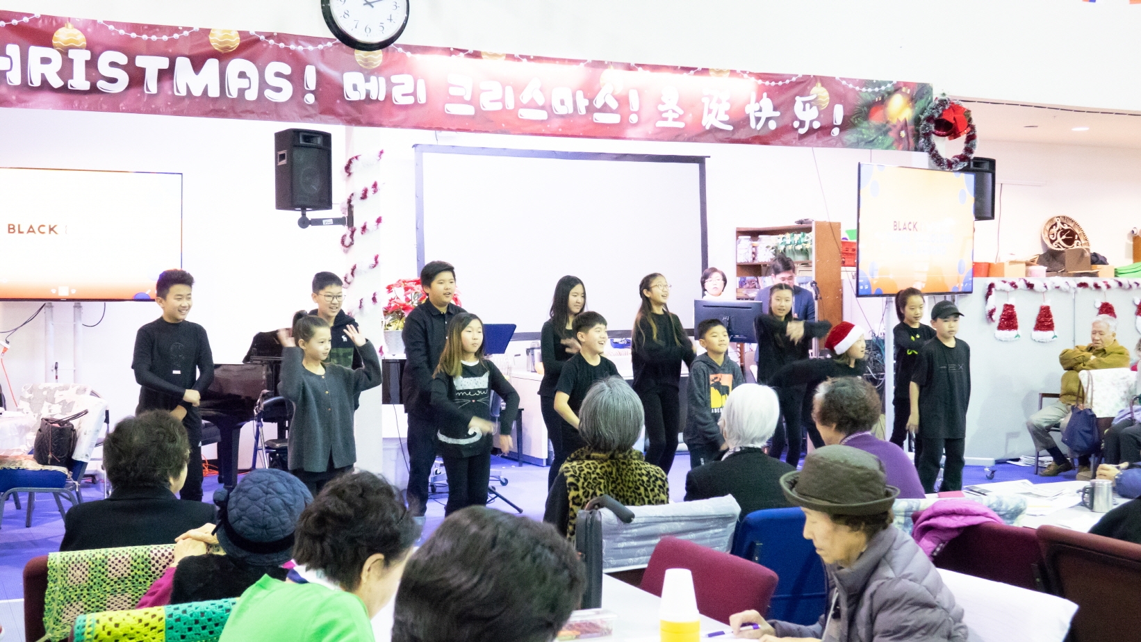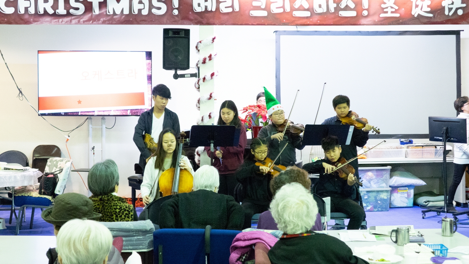 크리스마스 이브에, 초등부에서 열심히 준비한 챔버와 공연으로 월넛에 있는 양로복지센터에 방문하여 예수님의 사랑을 전하고 왔습니다. 어르신들이 초등부 학생들의 섬김을 통하여 행복하고 기뻤던 시간이었습니다. 초등부 학생들도 선생님도 어르신들도 예수님으로 인해 행복한 성탄 이브였습니다!