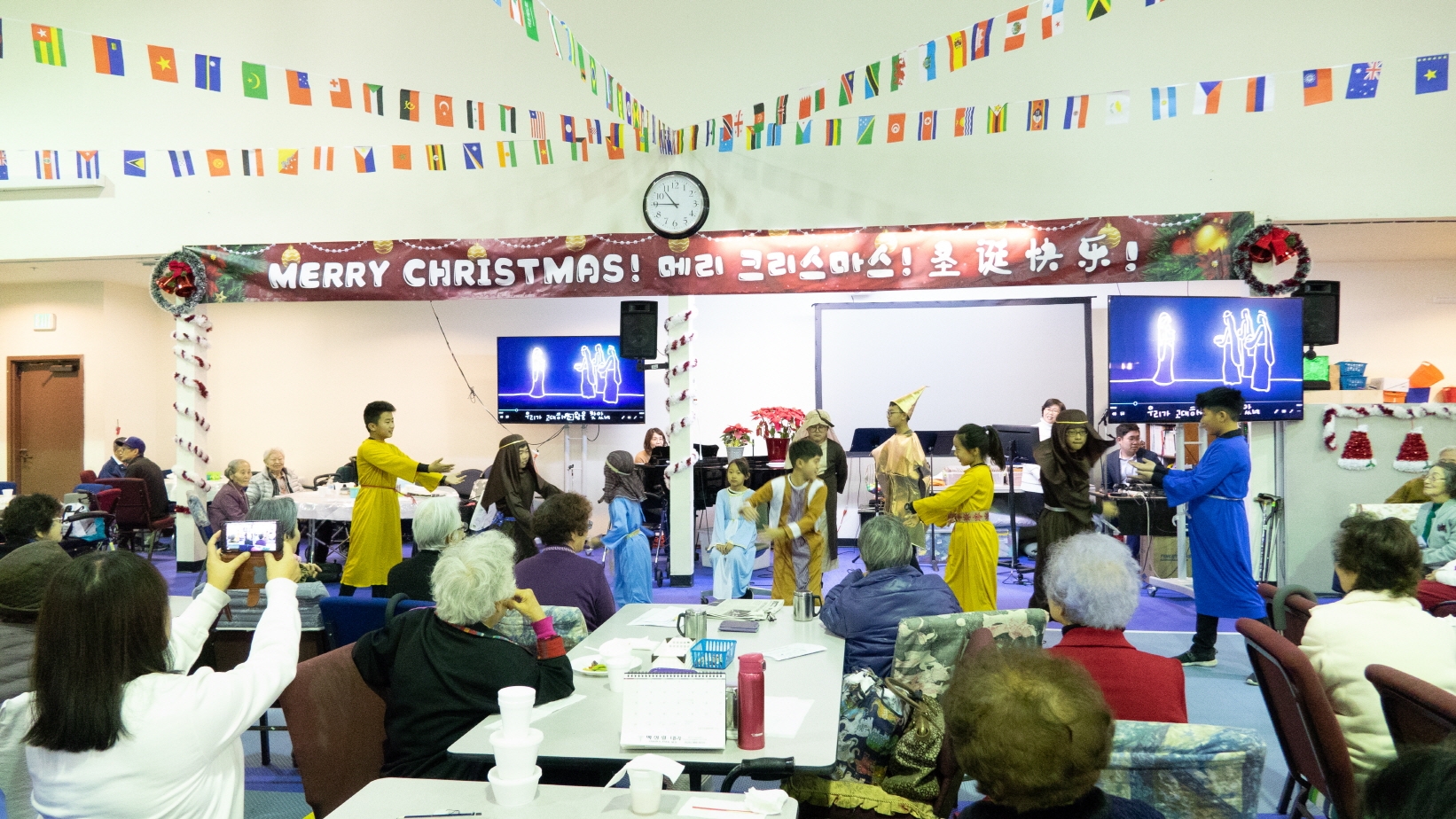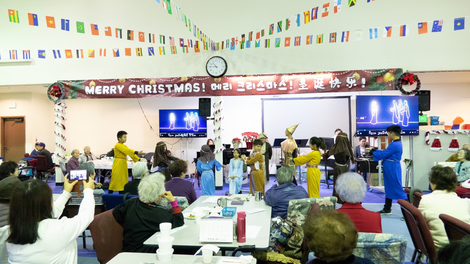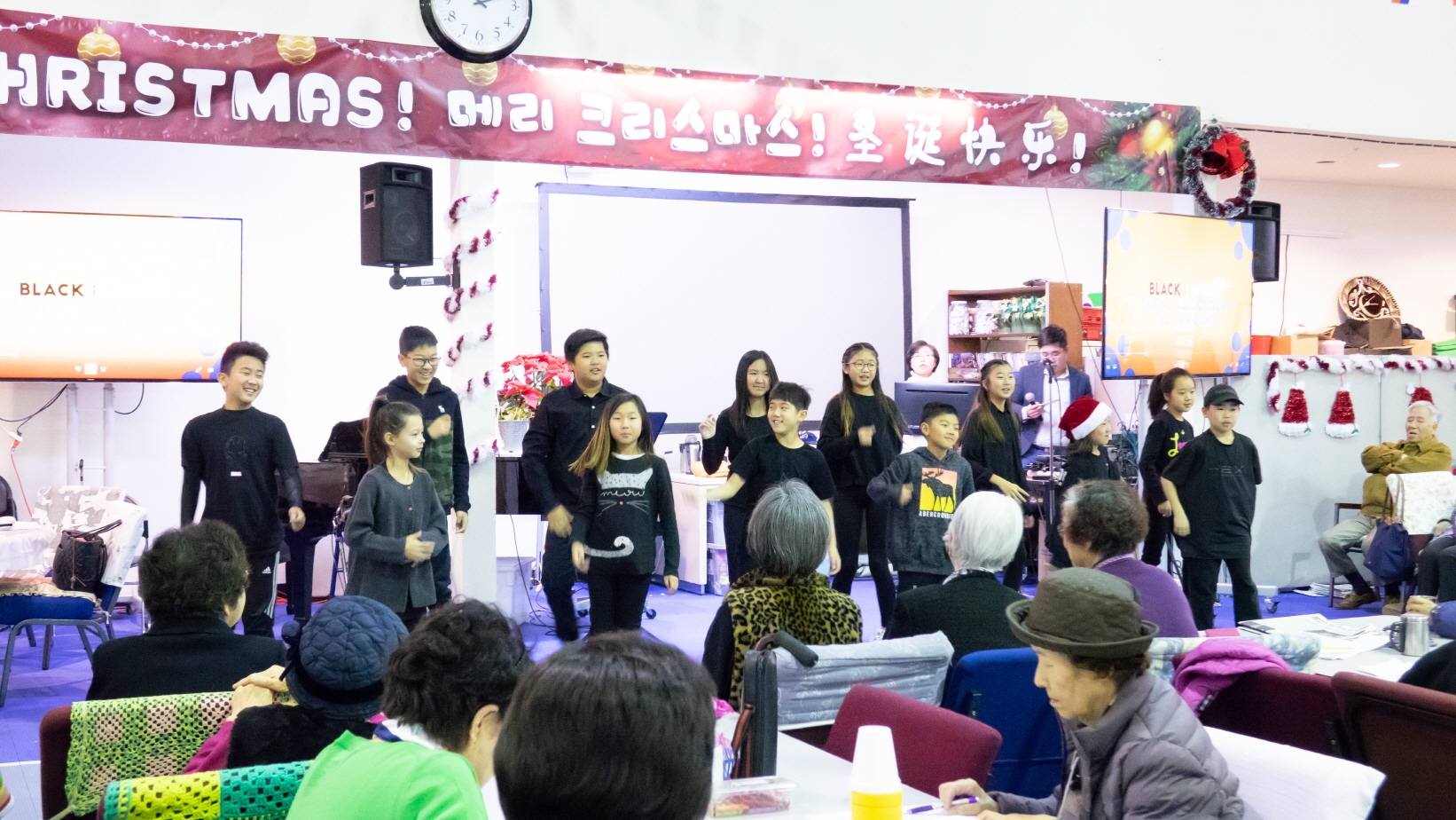 크리스마스 이브에, 초등부에서 열심히 준비한 챔버와 공연으로 월넛에 있는 양로복지센터에 방문하여 예수님의 사랑을 전하고 왔습니다. 어르신들이 초등부 학생들의 섬김을 통하여 행복하고 기뻤던 시간이었습니다. 초등부 학생들도 선생님도 어르신들도 예수님으로 인해 행복한 성탄 이브였습니다!