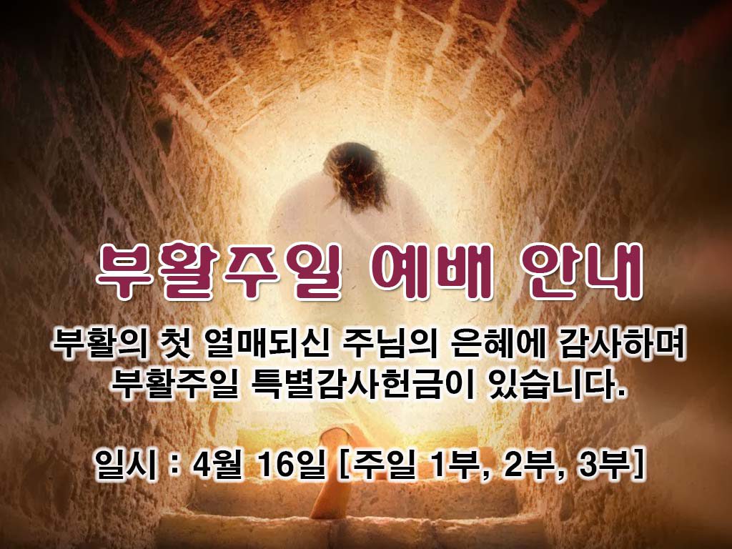 교회소식 부활주일 예배 안내 4월16일은 죽음의 권세를 이기시고 주님이 부활하신 부활주일입니다. 부활의 첫 열매되신 주님의 은혜에 감사하며 부활주일 특별감사헌금이 있습니다. 일시 : 4월 16일 주일 1부 2부 3부, 장소: 사랑채플 April 1, 2017/by admin https://www.eastsarang.org/wp-content/uploads/2017/04/02-부활주일.jpg 768 1024 admin https://www.eastsarang.org/wp-content/uploads/2021/08/ESCC-Logo-SSSS.png admin2017-04-01 17:28:562017-06-01 13:07:54부활주일 예배 안내