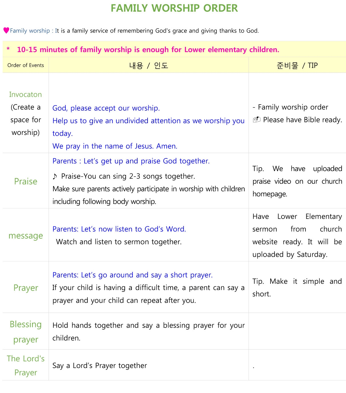 가정예배 가이드라인