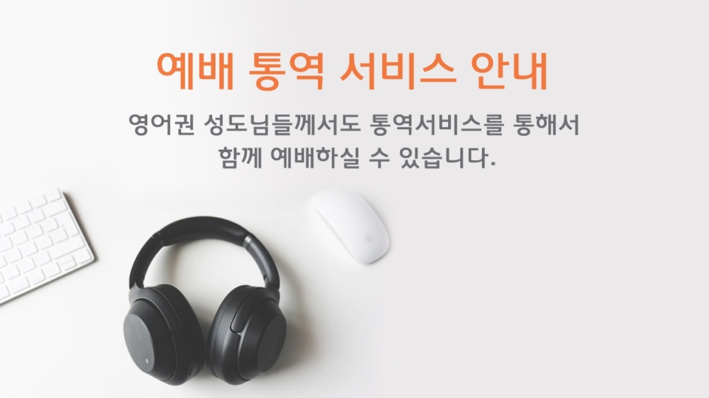 펜데믹 이후 예배가 오픈되고 많은 성도님들께서 예배에 참석하심에 따라, 통역 서비스를 다시 시작하려고 합니다. 영어권 성도님들께서도 통역서비스를 통해서 함께 예배하실 수 있습니다. 언어는 달라도 한마음으로 드리는 예배가 되길 소망합니다.