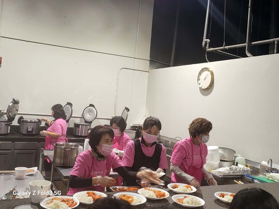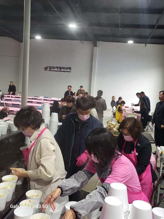 또한 매월 첫째주일에는 친교실에서 맛있는 밥과 국이 제공됩니다. 예배를 마친 후 많은 성도님들 식사의 교제를 나누었습니다. 특별히 권사회에서 식사섬김을 통하여 교회를 섬겨주셨습니다. 감사드립니다.