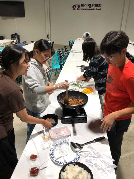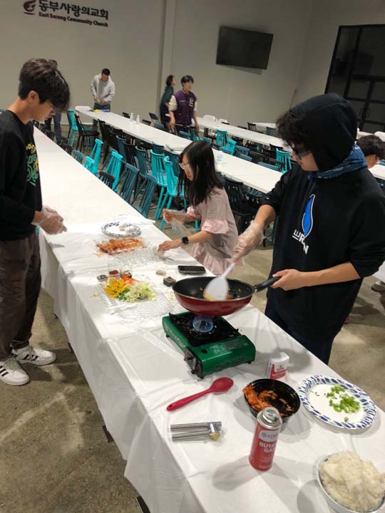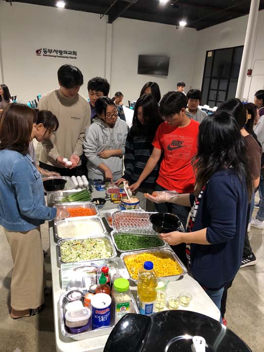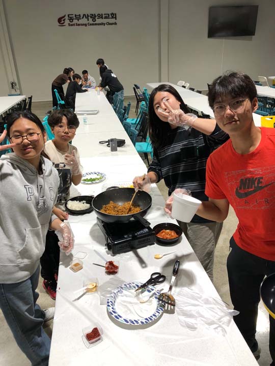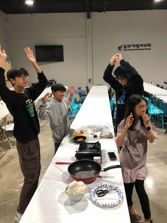 포토 갤러리 Youth Cooking Competition지난 주 금요일 6학년들을 초청하여 Youth Cooking Competition의 시간을 가졌습니다. 함께 모여 예배한 뒤 친교실에 모여 각자의 스타일대로 김치볶음밥을 만들었습니다. 다음달부터 중고등부에 올라오게 될 6학년들과 교제하였던 뜻깊은 시간이었습니다. 계속해서 신앙 안에서 성장하는 중고등부 되도록 성도님들의 기도와 관심 부탁드립니다! May 26, 2023/by admin https://www.eastsarang.org/wp-content/uploads/2023/05/kakaotalk_20230520_112354006_28.jpg 697 1280 admin https://www.eastsarang.org/wp-content/uploads/2021/08/ESCC-Logo-SSSS.png admin2023-05-26 12:46:522023-05-26 12:46:52Youth Cooking Competition