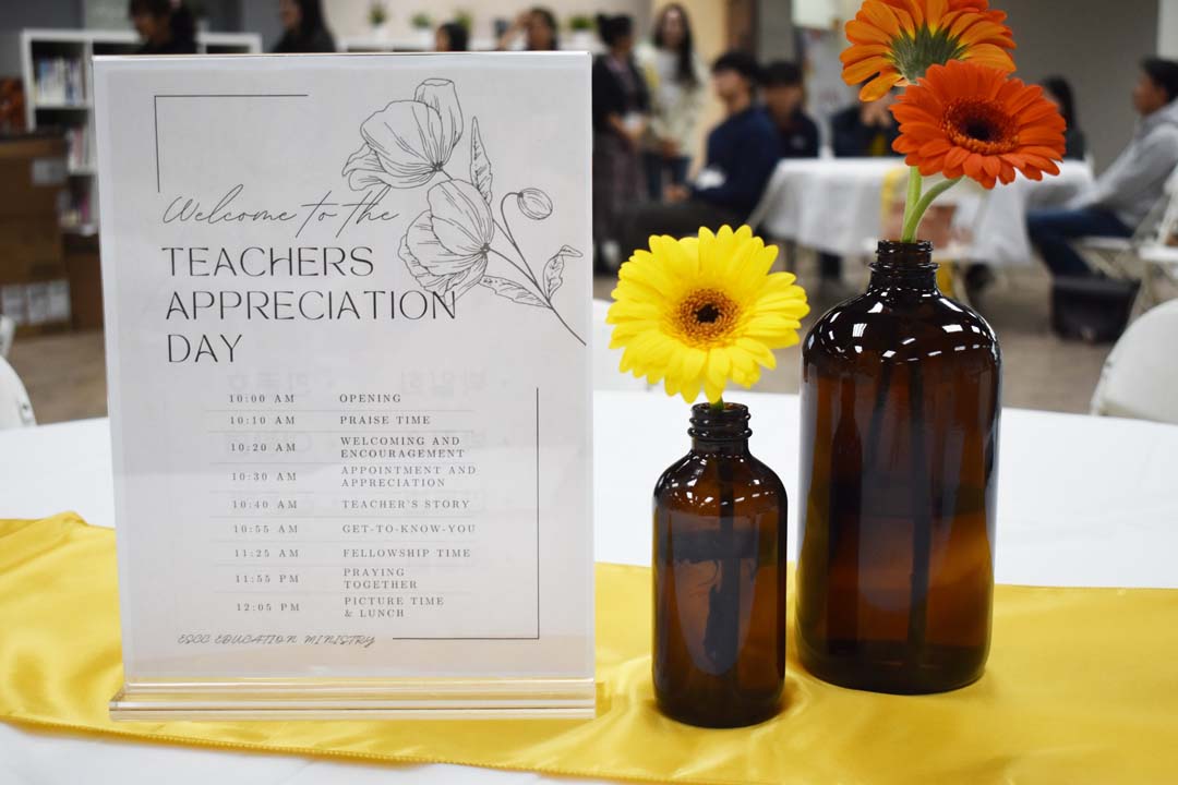 포토 갤러리 Teacher’s Appreciation Day지난주 토요일에 우리교회 교육부를 섬기시는 선생님들을 초대하여 Teachers Appreciation 시간을 가졌습니다. 새롭게 선생님으로 조인하신 분들을 임명하고, 5년, 10년, 15년동안 한결같이 섬겨주신 분들에게 감사의 마음을 전하였습니다. 동부사랑의교회 교육부를 든든하게 세워가시는 모든 선생님들 스텝들 TA들 감사드리며, 계속하여 다음세대가 바르게 세워질 수 있도록 기도와 관심 부탁드립니다. October 6, 2023/by admin https://www.eastsarang.org/wp-content/uploads/2023/10/dsc_1016.jpg 720 1080 admin https://www.eastsarang.org/wp-content/uploads/2021/08/ESCC-Logo-SSSS.png admin2023-10-06 09:33:202023-10-06 09:33:20Teacher’s Appreciation Day