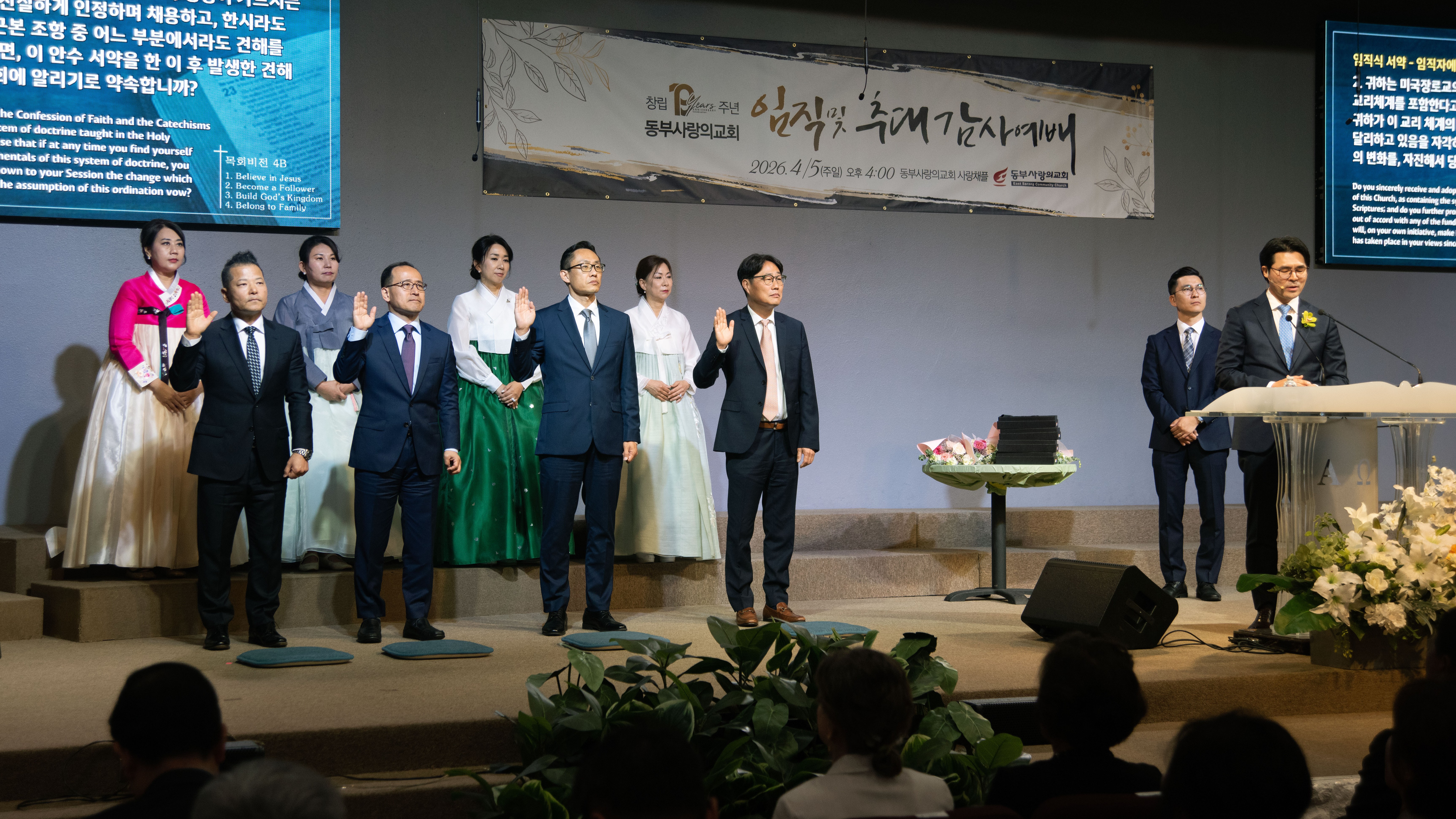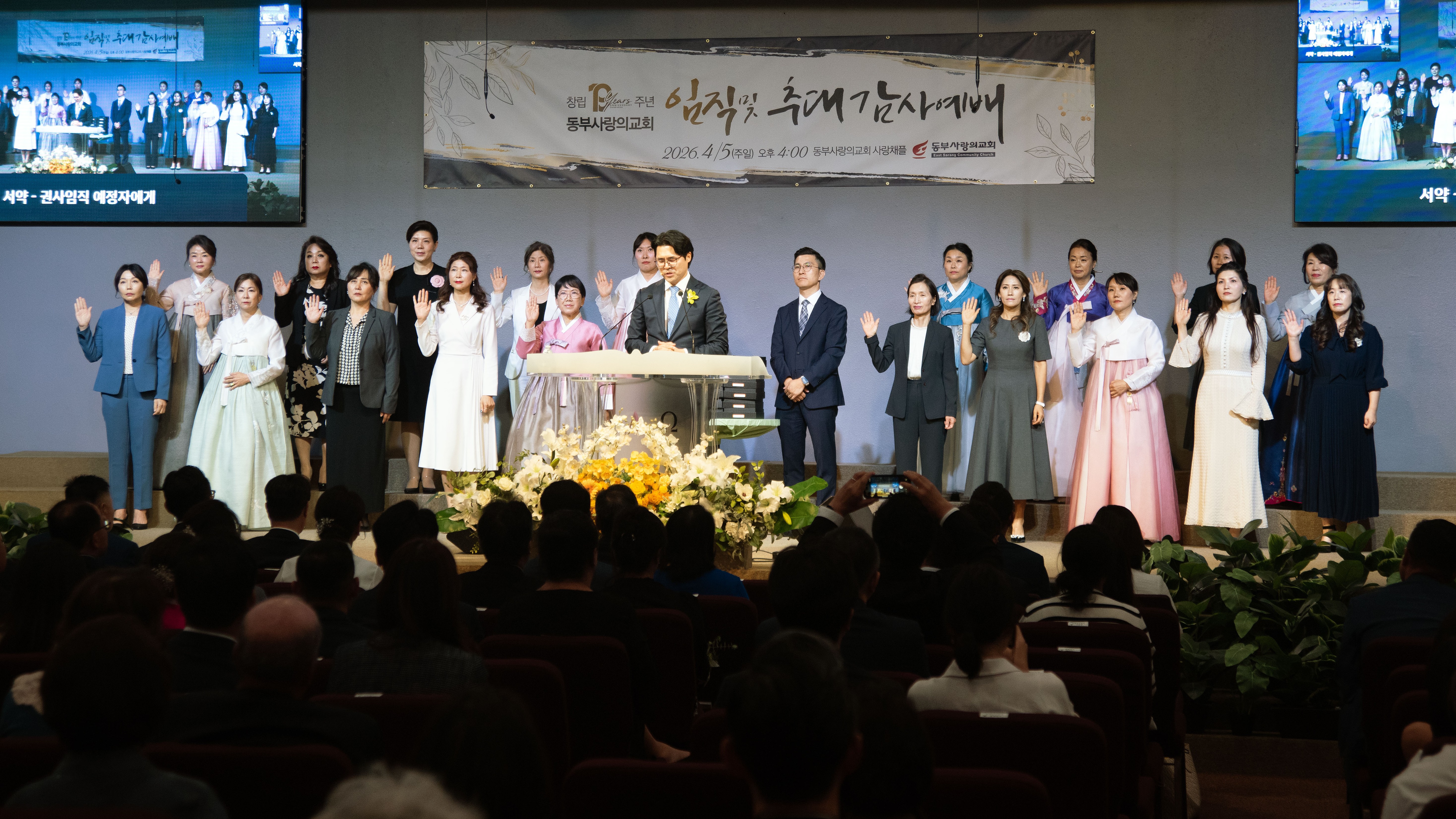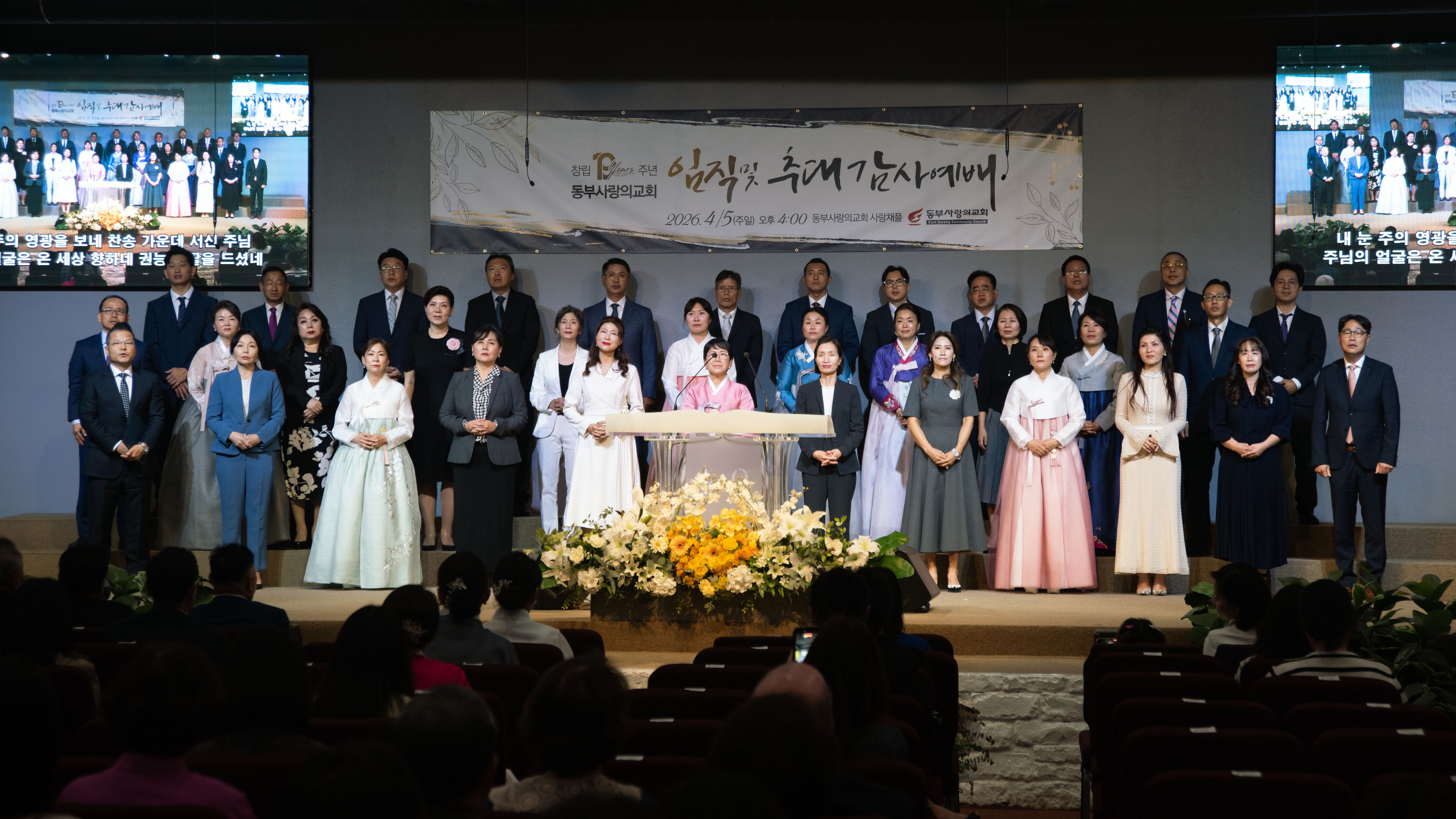 포토 갤러리 창립 19주년 임직 및 추대 감사예배2026/04/05 창립 19주년 임직 및 추대 감사예배가 은혜 가운데 진행되었습니다. 임직하신 장로, 안수집사, 권사님들과 추대되신 명예장로, 명예권사님들 모두를 축복하며 이후의 사역과 삶에 더 풍성한 은혜와 열매가 넘치기를 함께 기도합니다. April 7, 2026/by admin https://www.eastsarang.org/wp-content/uploads/2026/04/editdgt_350251-scaled.jpg 993 2560 admin https://www.eastsarang.org/wp-content/uploads/2021/08/ESCC-Logo-SSSS.png admin2026-04-07 11:17:022026-04-17 10:56:56창립 19주년 임직 및 추대 감사예배