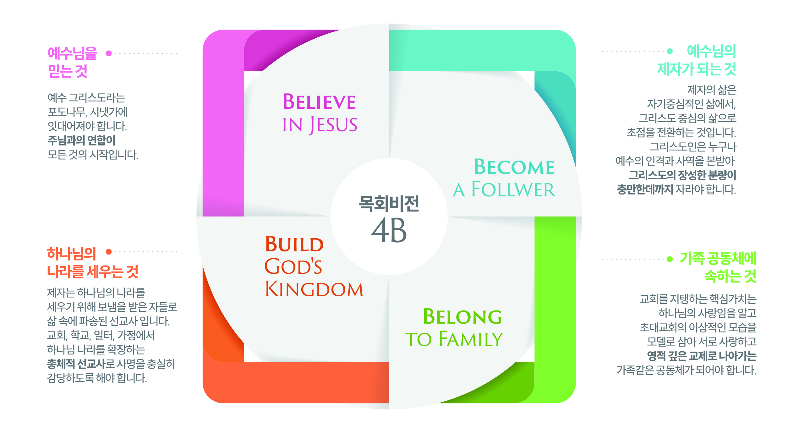 동부사랑의교회는 역동적인 예배, 변화되는 훈련, 하나되는 교제, 다음세대를 세우는 교육을 중심으로 예수 그리스도의 온전한 제자로 성장해 가고 있습니다. 전적으로 헌신된 평신도 리더들과 아이들을 사랑으로 섬기는 순전한 교사들, 그리고 영적으로 준비된 사역자들이 한 마음으로 생명의 공동체로 세워져 가고 있습니다.